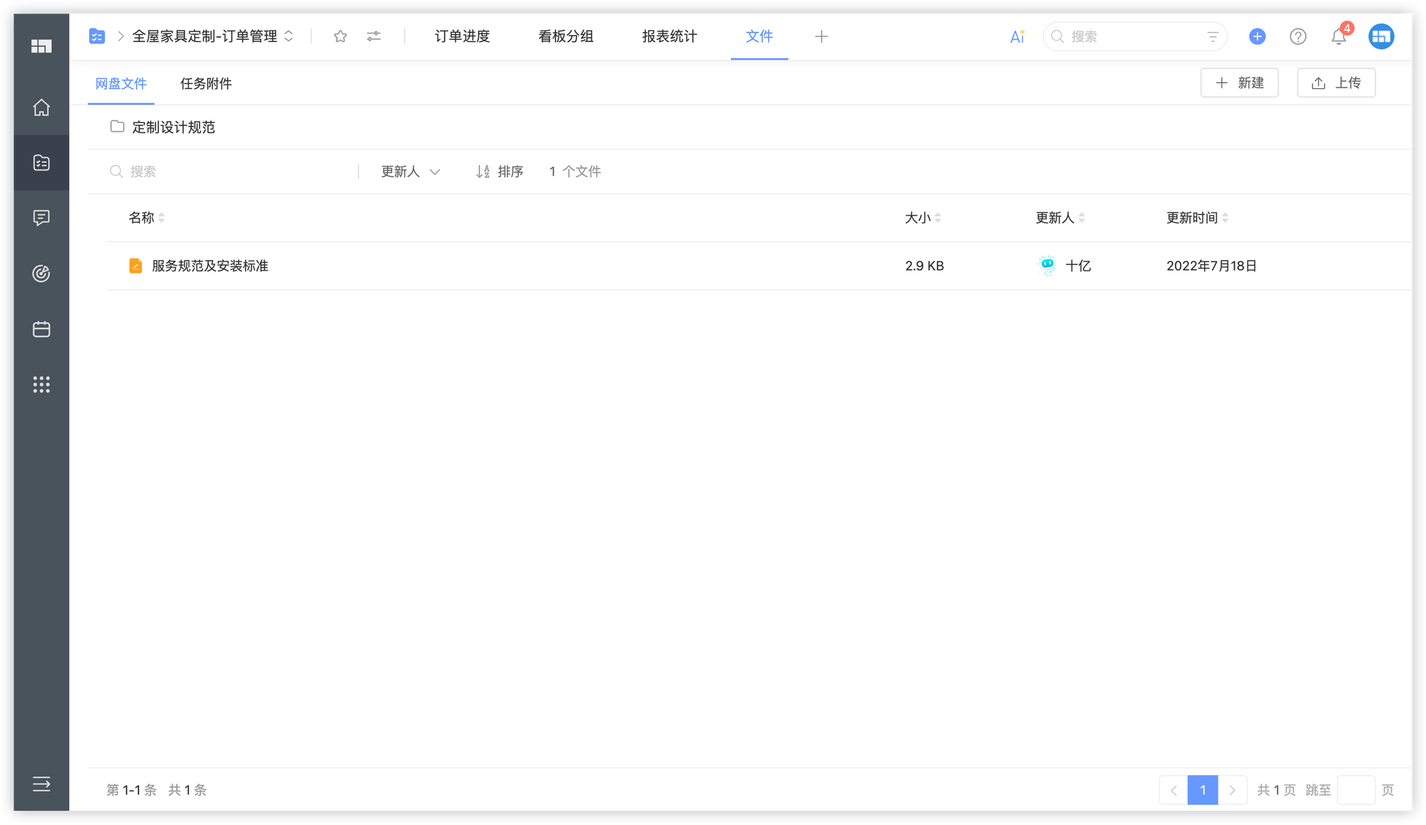 - 利用 Worktile 的文件功能,将fu'wu'g服务规范、订单相关附件统一汇总,方便查找和管理。
