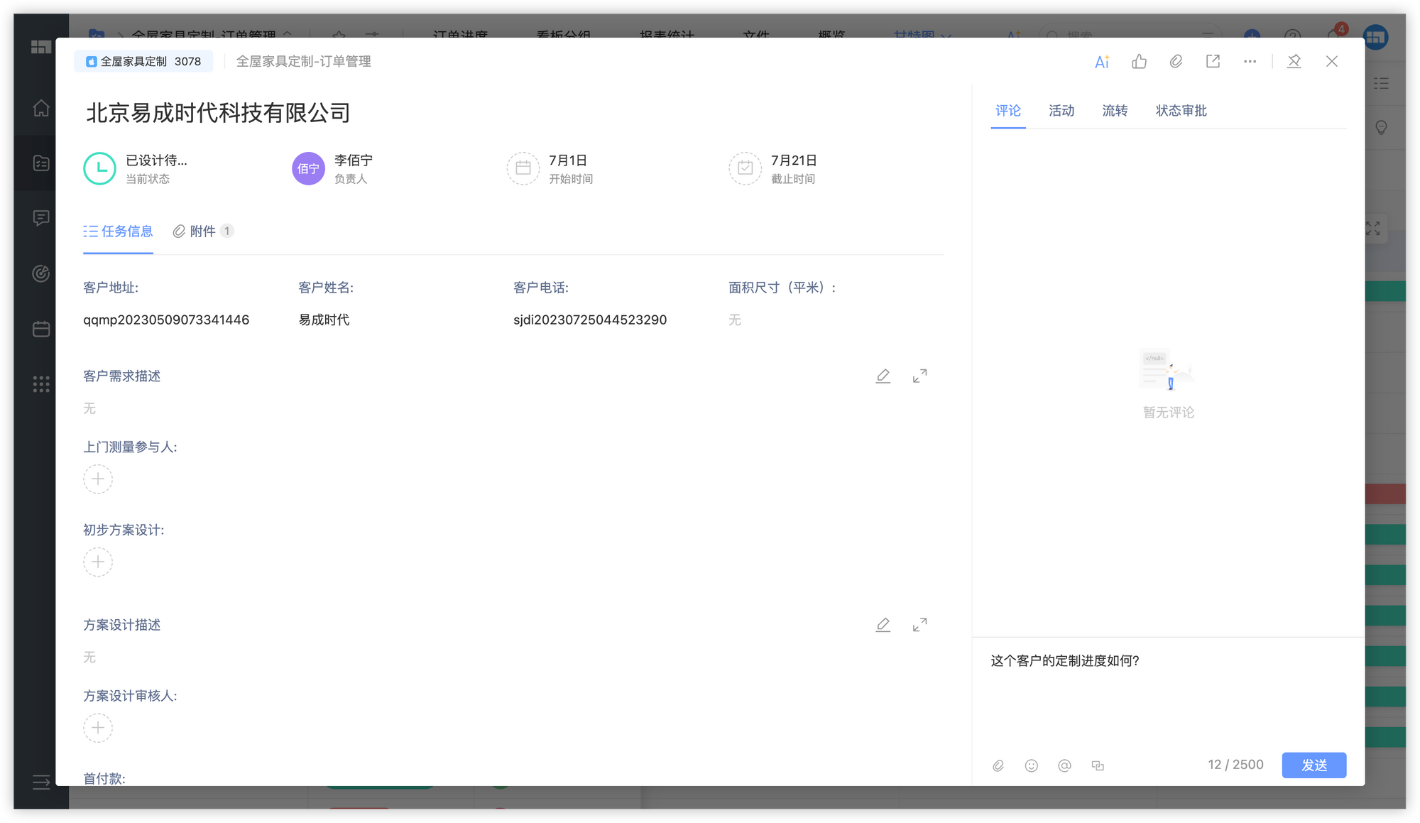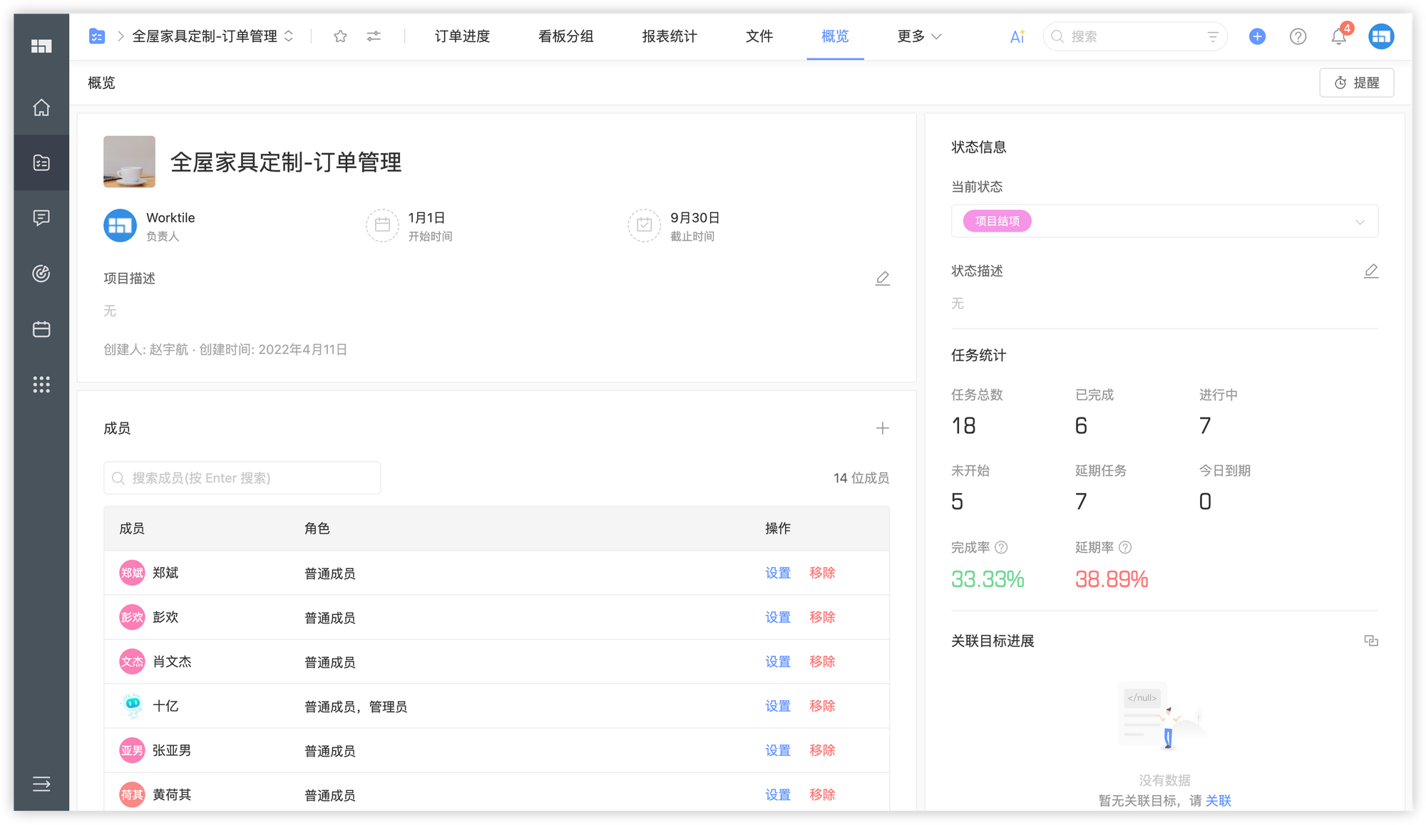 在当前全屋家具定制市场,竞争日益激烈,企业面临着诸多挑战。订单管理流程复杂,项目进度难以把控,成员间协作不畅等问题频发,导致效率低下、客户满意度降低。
