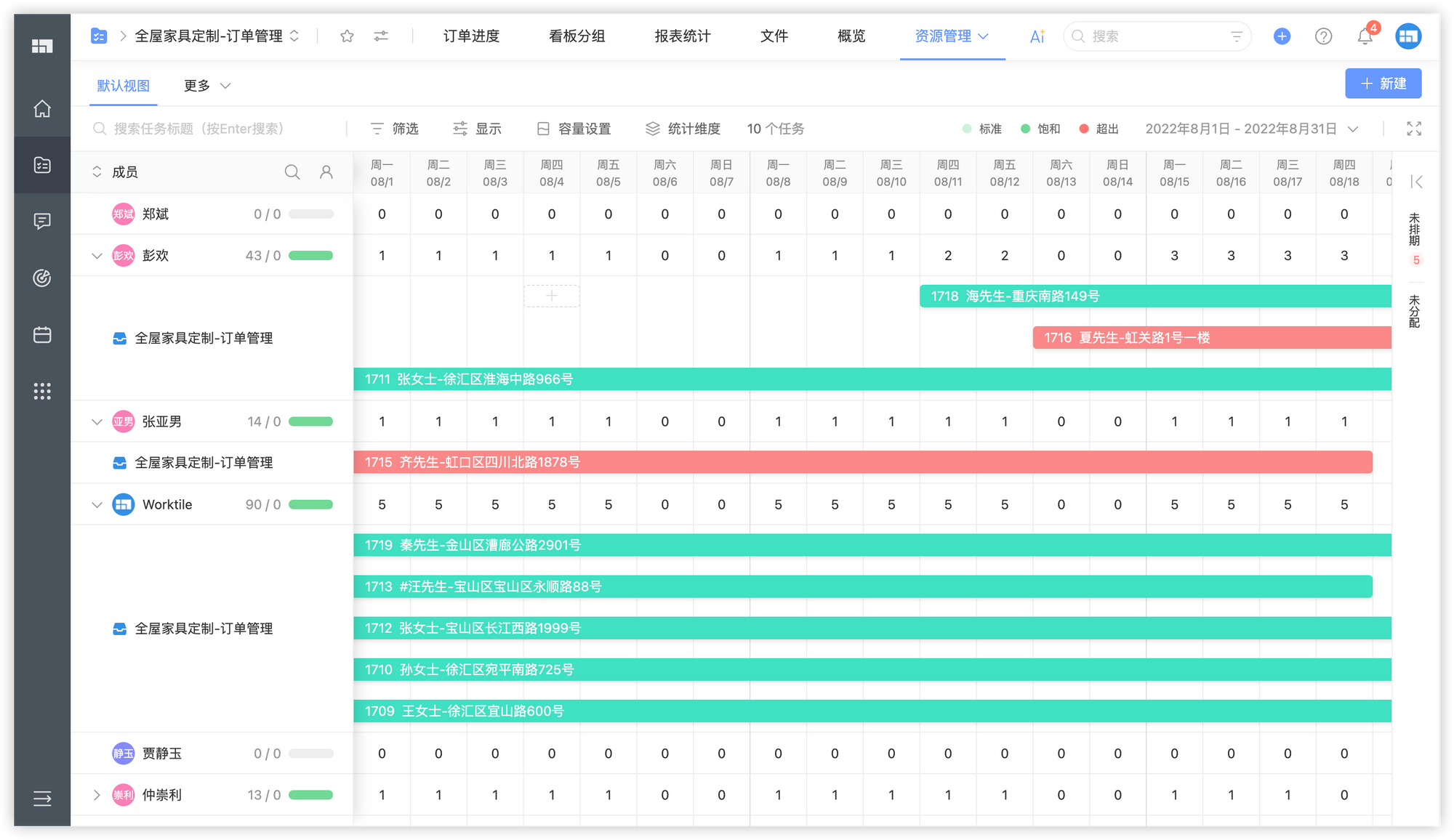 - 资源管理功能可直观展示成员任务分配和工作饱和度,合理分配任务。