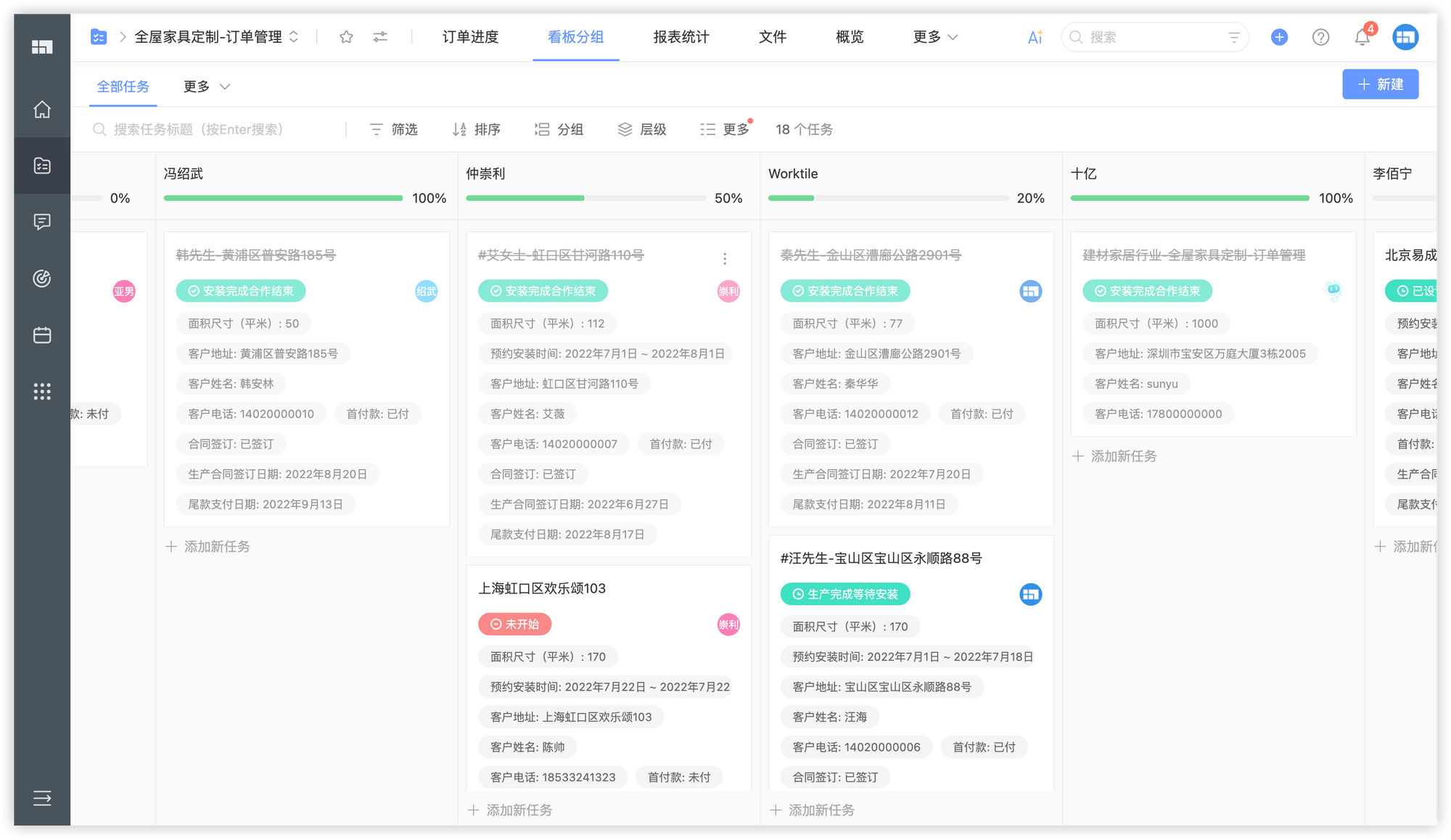 点击此 链接 ,查看 Worktile 的订单管理(全屋家具定制)解决方案,并安装模板到您的企业。