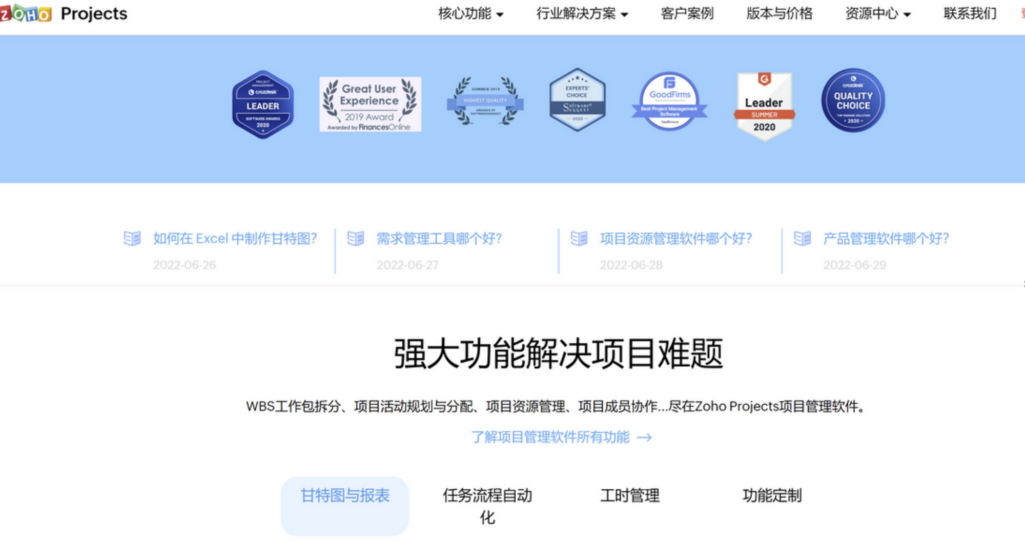 Zoho Projects 是国内一家知名的项目管理软件厂商,在工程项目管理方面提供项目计划、协调团队、管理工程进度与流程等功能。(官网: https://www.zoho.com.cn/projects )