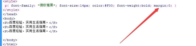 6、 那么这些间距是怎样形成的呢?其实是html的段落有着自己的margin值,默认情况下不是非零状态。我们就需要在html中将p标签的margin值设为0。在浏览器中刷新页面,可以看到段落之间的间距缩小了。