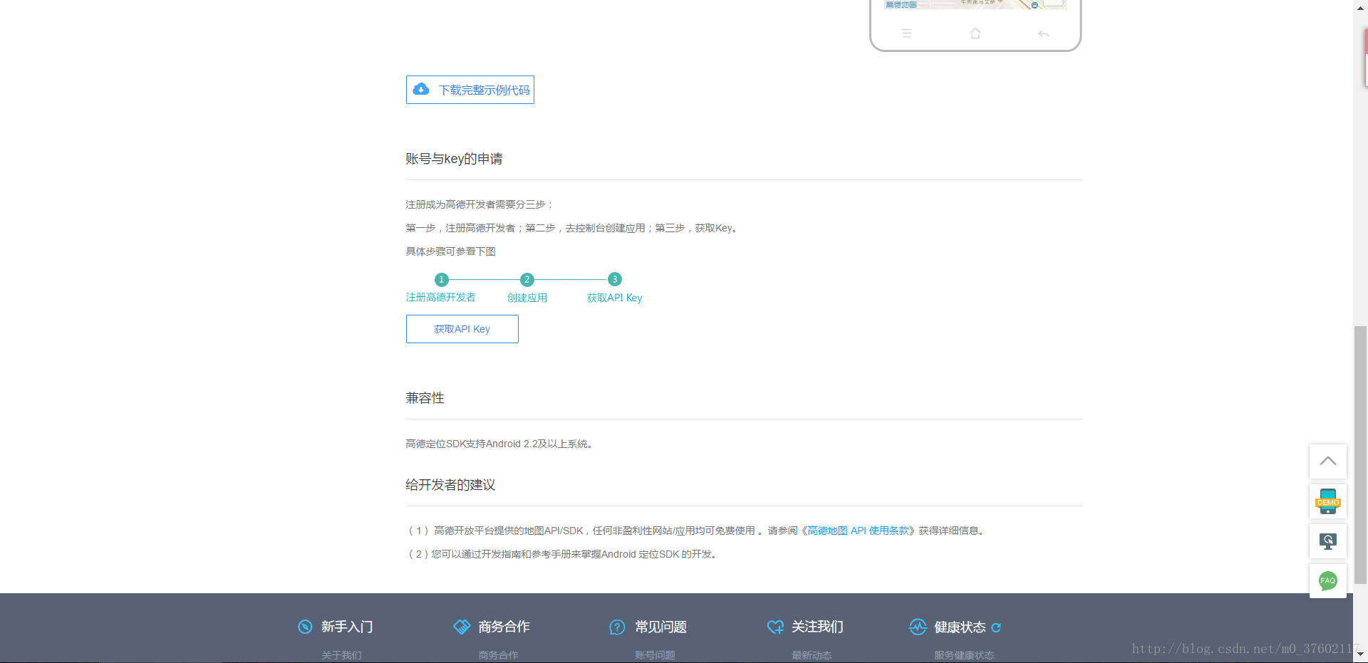 四、接入第三方SDK都需要获取API key,所以点击获取