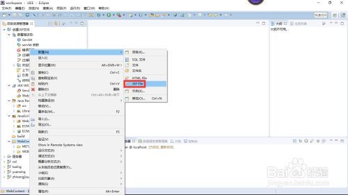 9.右击WebContent文件,在弹出的快捷菜单中选择【新建>JSP File(JSP文件)】菜单项,如下图所示。
