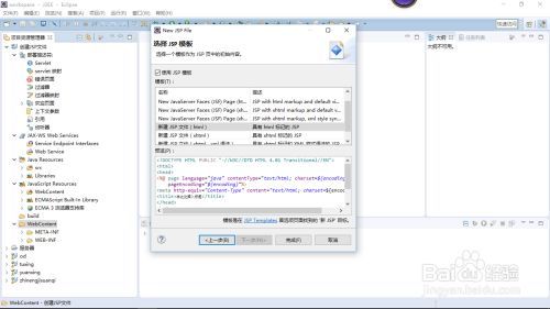 10.弹出选择JSP模板的对话框,从中选择JSP模板,单击【完成】按钮,将创建JSP文件