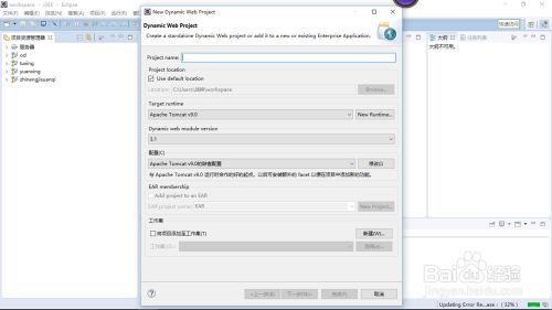 2.依次单击菜单栏的【文件>新建>动态Web项目】菜单项,将打开【New Dynamic Web Project(新建动态Web项目)】对话框,如下图所示。