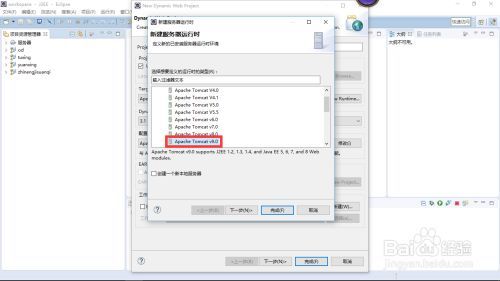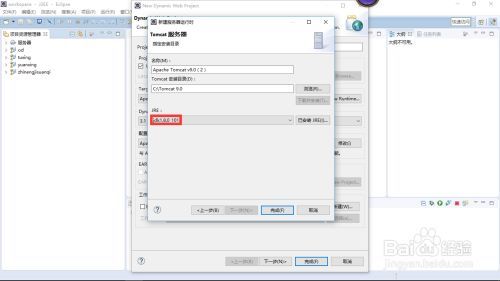 4.选中【Apache Tomcat v9.0】<注意:必须与你下载的Apache Tomcat服务器版本(请参见http://jingyan.baidu.com/article/49ad8bce47c3465835d8fa78.html)相对应,否则无法实现运行结果>,单击【下一步】按钮,将打开指定Tomcat服务器安装路径的对话框,如下图所示。