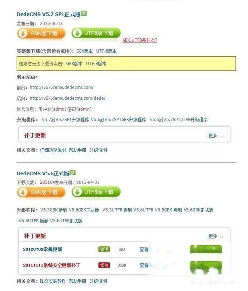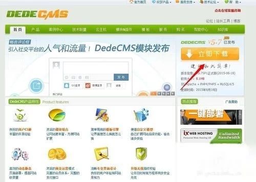 搜索“织梦cms”选择织梦CMS官方网站;下载DedeCMS V5.7 SP1正式版 GBK版本或UTF-8版本.