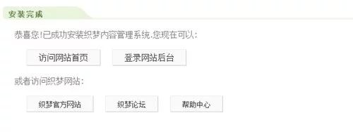 如果没有出现该页面,而是出现了一个空白页面写着dir 那么请删除install文件夹中的 install.lock.txt 并且把index.php.bak改成index.php 然后输入:http://你的网址/install/index.php