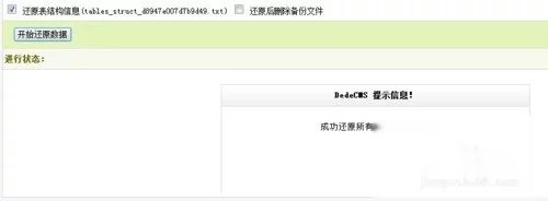 点击“登录进入后台” 或者输入http://您的域名/dede/ 为了安全起见,dede这个文件夹的名字可以改掉,这个文件夹就是你后台登陆的网址 按照图片提示步骤。进入系统数据库恢复页面