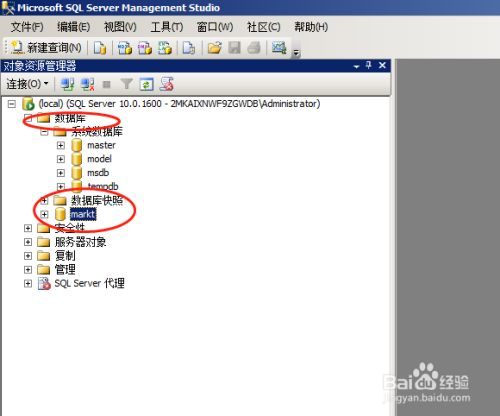 2、进去以后,点击数据库文件前面的+号,然后点开系统数据库前面的+号,找到你要备份的数据库,比如markt数据库