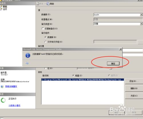 4、在弹出的界面里,选择备份组建、备份时间和备份路径。然后选择确定,进行备份。备份成功后,会提示备份成功,最后关闭即可。