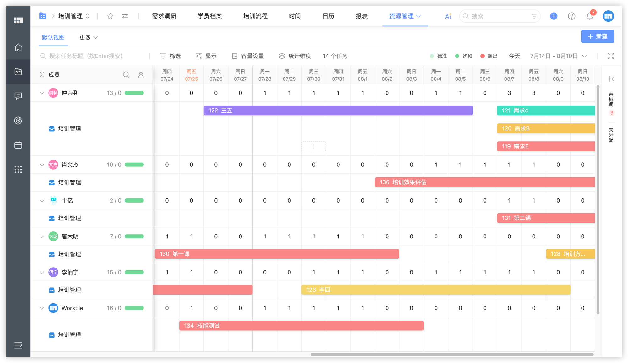跨项目资源管理:在项目集中查看多个培训项目的资源分布,实现跨项目的人员调配与资源平衡。