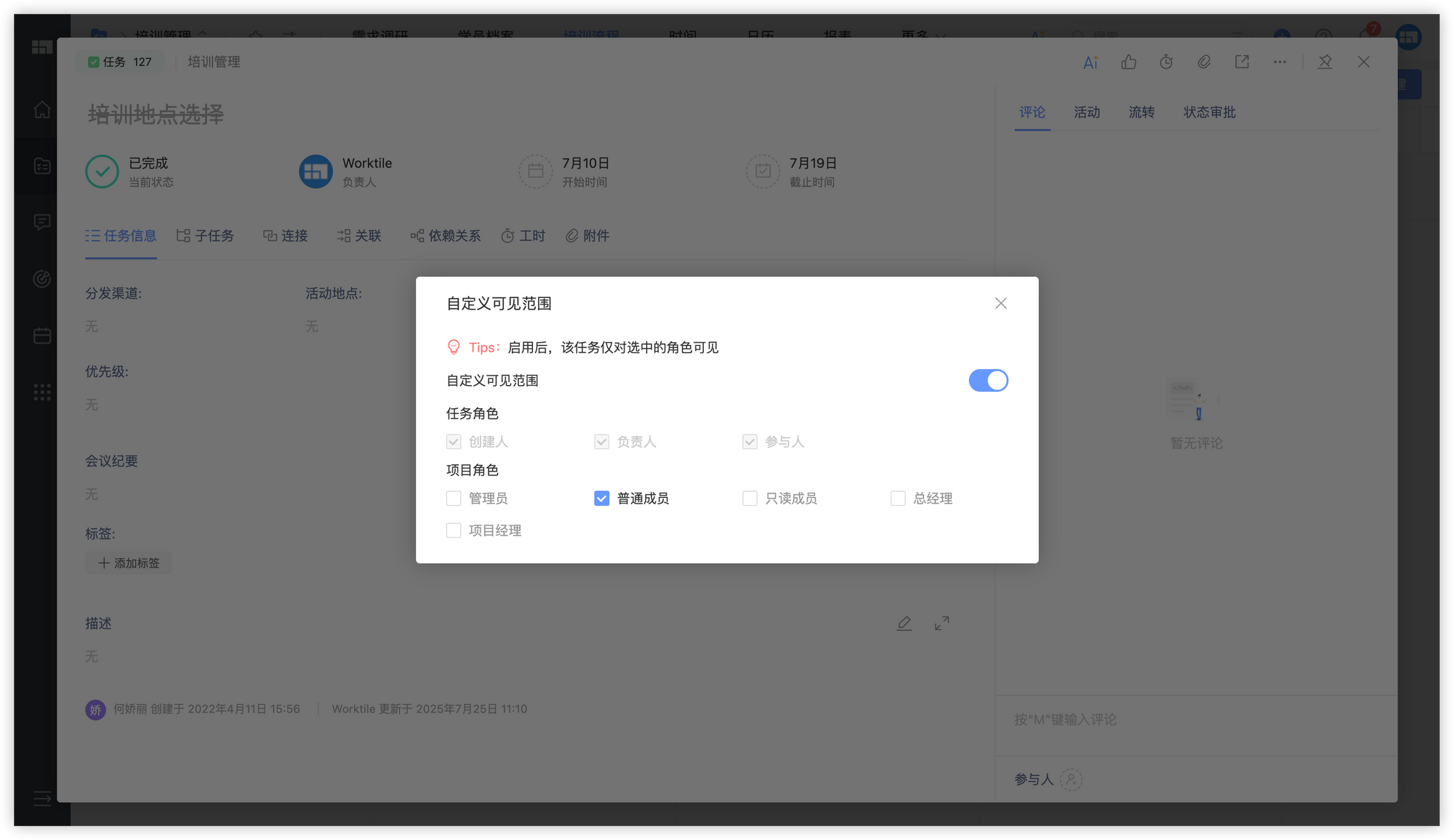 任务可见性控制:根据角色或部门设定任务的可见范围,确保信息精准传达,提高协作效率。