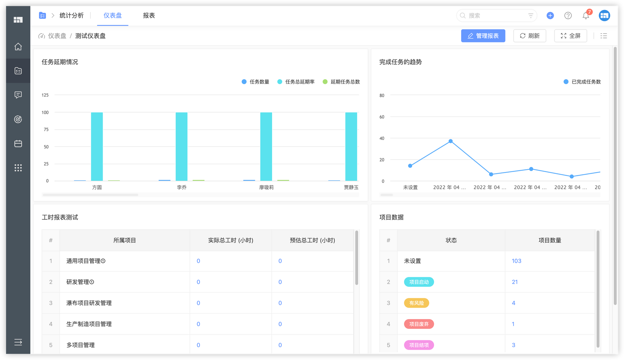 自定义仪表盘:创建数据仪表盘,集中展示任务完成率、延期率、成员效率等关键指标,辅助决策。