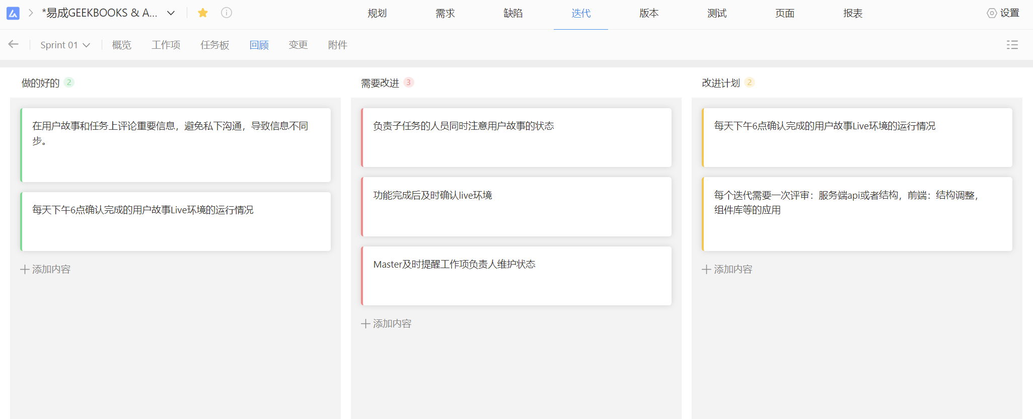 6、Sprint回顾会,敏捷团队讨论反思,并计划改进本次迭代中的问题。