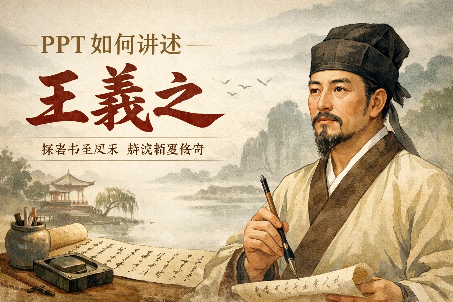 可以按照时间顺序梳理王羲之的主要生平事件,突出他的成长经历、重要作品及历史地位。配合图片和时间轴,有助于观众快速了解他的生平故事。