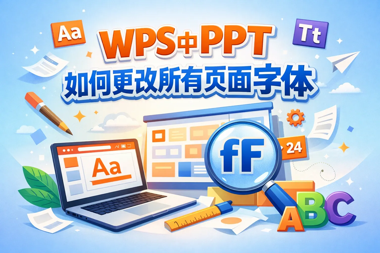 我在WPS演示文稿中制作了很多幻灯片,想统一更改所有页面的字体,有没有快捷方法可以一次性完成?