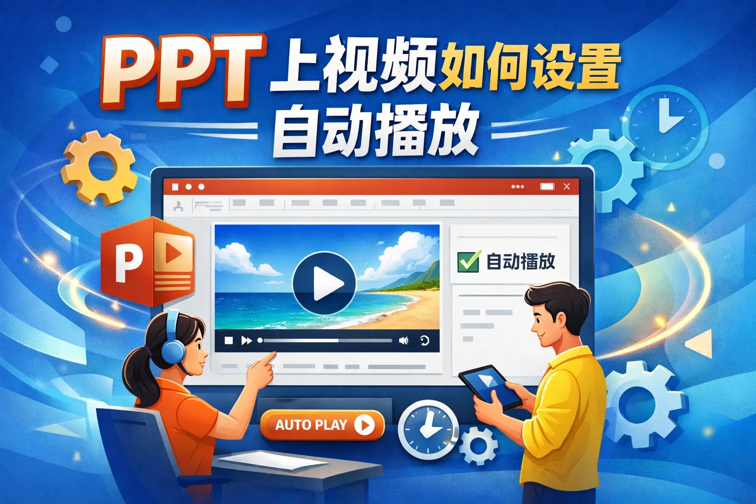 我在制作PPT时插入了一个视频,但每次播放都需要手动点击才能播放。怎么样设置视频能够自动播放?
