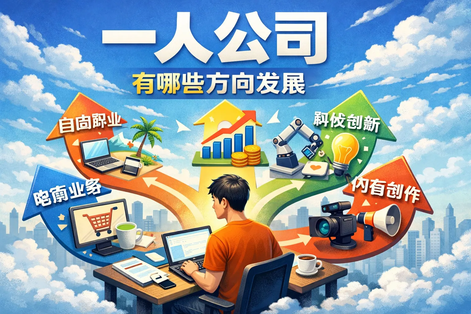 一人公司是以个人能力为核心、借助数字工具开展经营的创业形态,主要发展方向包括知识服务、内容创作、电商零售、技术外包、本地服务与数字产品等。不同方向在启动成本、收入稳定性与扩展性方面差异明显,应结合自身能力与市场需求进行选择。未来趋势将朝着专业化、产品化与多渠道运营发展,构建稳定现金流与个人品牌资产是实现长期增长的关键。
