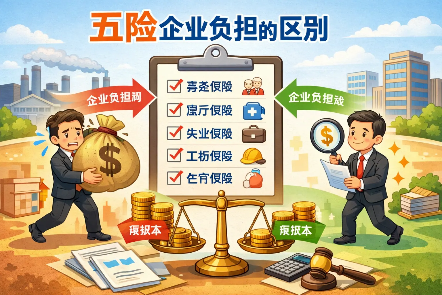 五险企业负担的区别主要体现在不同险种的缴费比例、责任分担和行业风险差异上,其中养老保险和医疗保险构成企业社保成本的主要部分,占比最高且具有较强刚性;工伤保险根据行业风险浮动,由企业全额承担;失业保险比例较低且常有阶段性减免政策;生育保险多已并入医疗保险。整体来看,五险企业负担受地区政策、缴费基数和行业类别影响明显,企业应在合规前提下通过精细化管理优化人力成本结构。