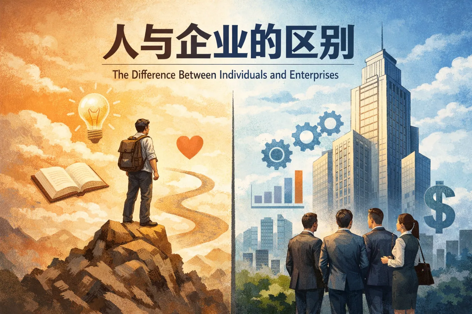 做人强调个人品格、道德自律与情感关系,以良知和长期信誉为核心;企业强调制度建设、组织效率与目标管理,以规则和结构保障运作。两者在目标导向、决策方式、责任承担与风险管理上存在显著差异:做人依赖内在价值判断,企业依赖流程与法律框架。成熟的社会发展应实现个人品格与企业制度的融合,在规则之中保持价值温度,在效率之上强化责任意识。未来趋势将更加重视制度与价值观的协同发展。