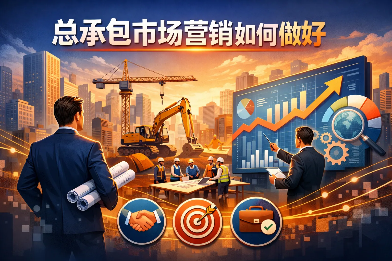 总承包市场营销是围绕工程项目获取与客户长期经营展开的系统性战略活动,其核心不在单次投标或报价,而在于市场定位、客户关系构建、专业能力输出与风险前置管理。与传统销售相比,它强调长期合作、品牌信誉与综合交付能力。未来,总承包市场营销将更加专业化、数字化和品牌化,企业需以数据驱动决策和协同管理为支撑,实现可持续增长。
