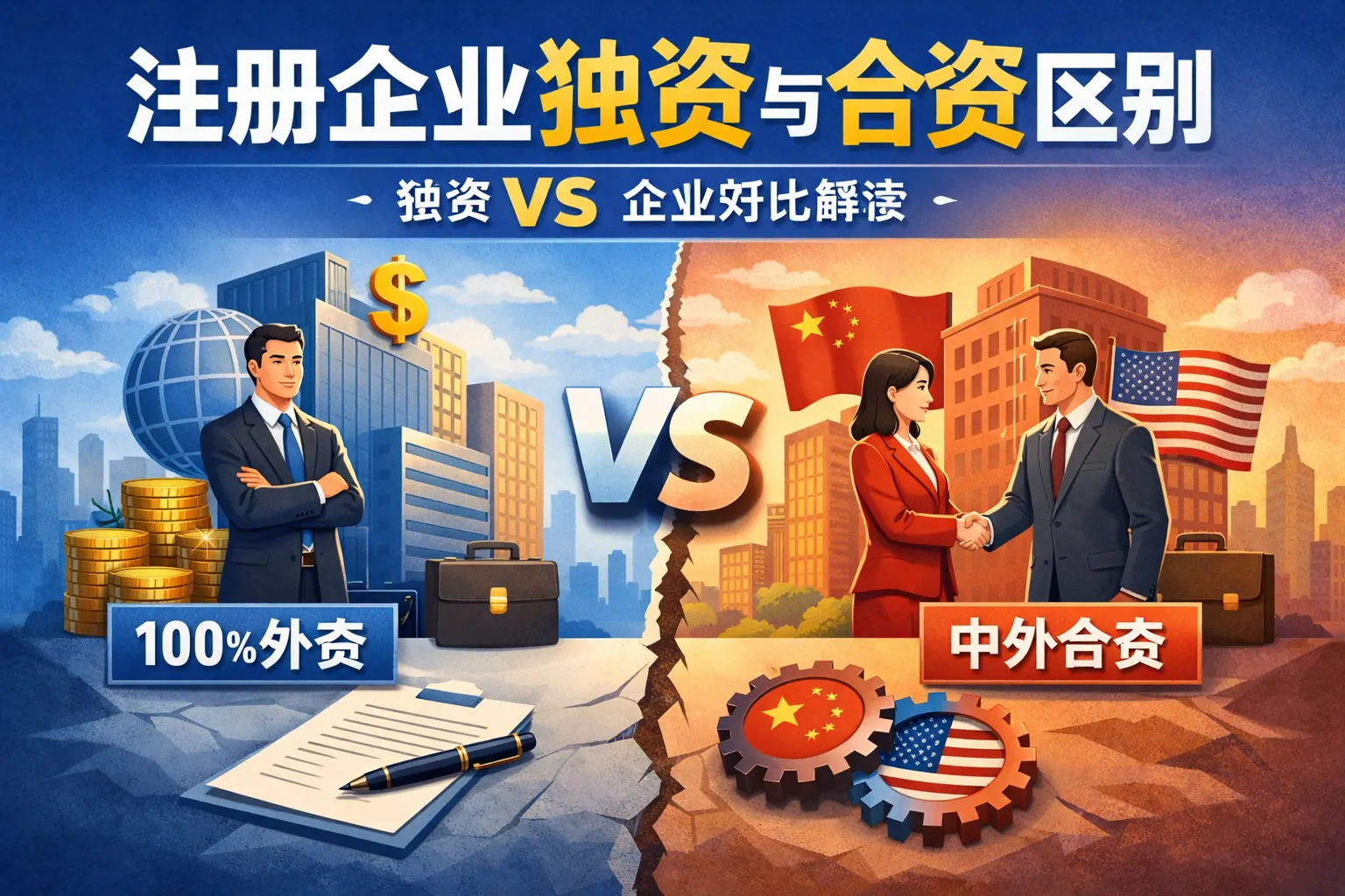 注册企业选择独资还是合资,核心差异体现在出资结构、控制权分配、风险承担、利润分配与融资能力等方面。独资企业强调单一投资主体与高决策效率,但风险集中;合资企业强调资源整合与风险分担,但治理结构更复杂。企业应结合资金实力、发展阶段与战略规划综合判断,匹配适合自身的组织形式。独资与合资没有绝对优劣,关键在于控制权需求、风险承受能力以及未来资本运作规划的差异。