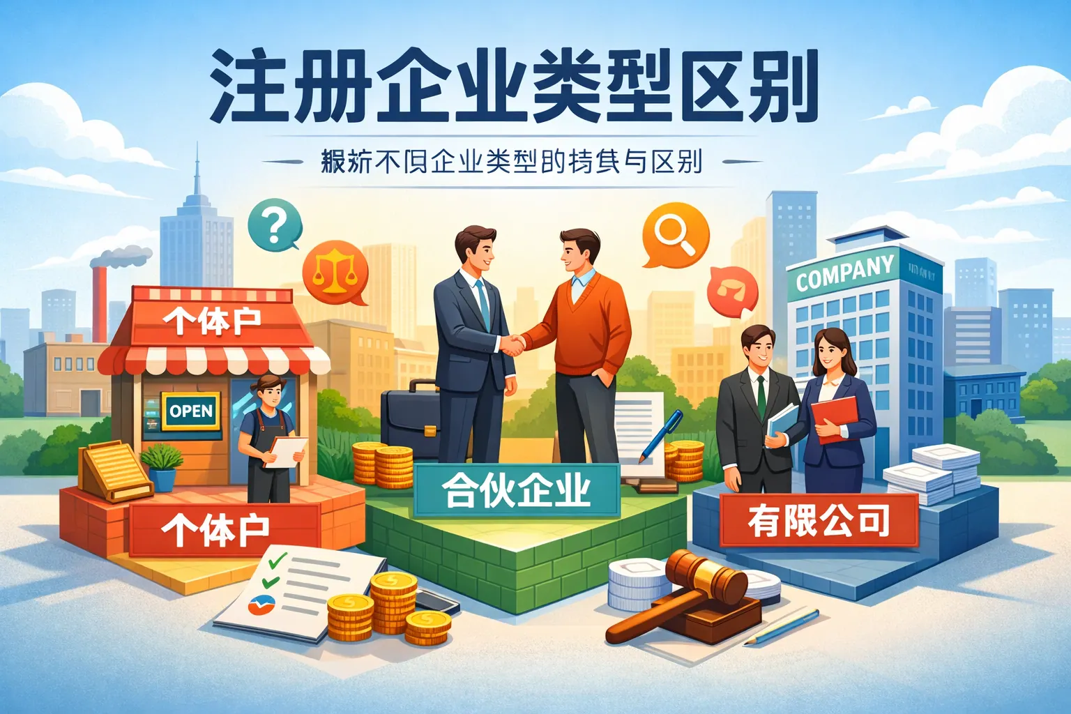 注册企业类型的区别主要体现在法律责任承担方式、是否具备法人资格、股东人数限制、融资能力以及税务处理结构等方面。个体工商户和个人独资企业适合小规模经营,但需承担无限责任;合伙企业强调责任划分与税务穿透;有限责任公司与股份有限公司具备法人资格,风险隔离能力更强,更利于融资与长期发展。企业在选择注册类型时,应综合考虑风险承受能力、融资规划、税务结构和治理需求,以匹配自身发展阶段与战略目标。随着市场环境变化,规范化与资本化程度更高的企业形式将成为主流趋势。