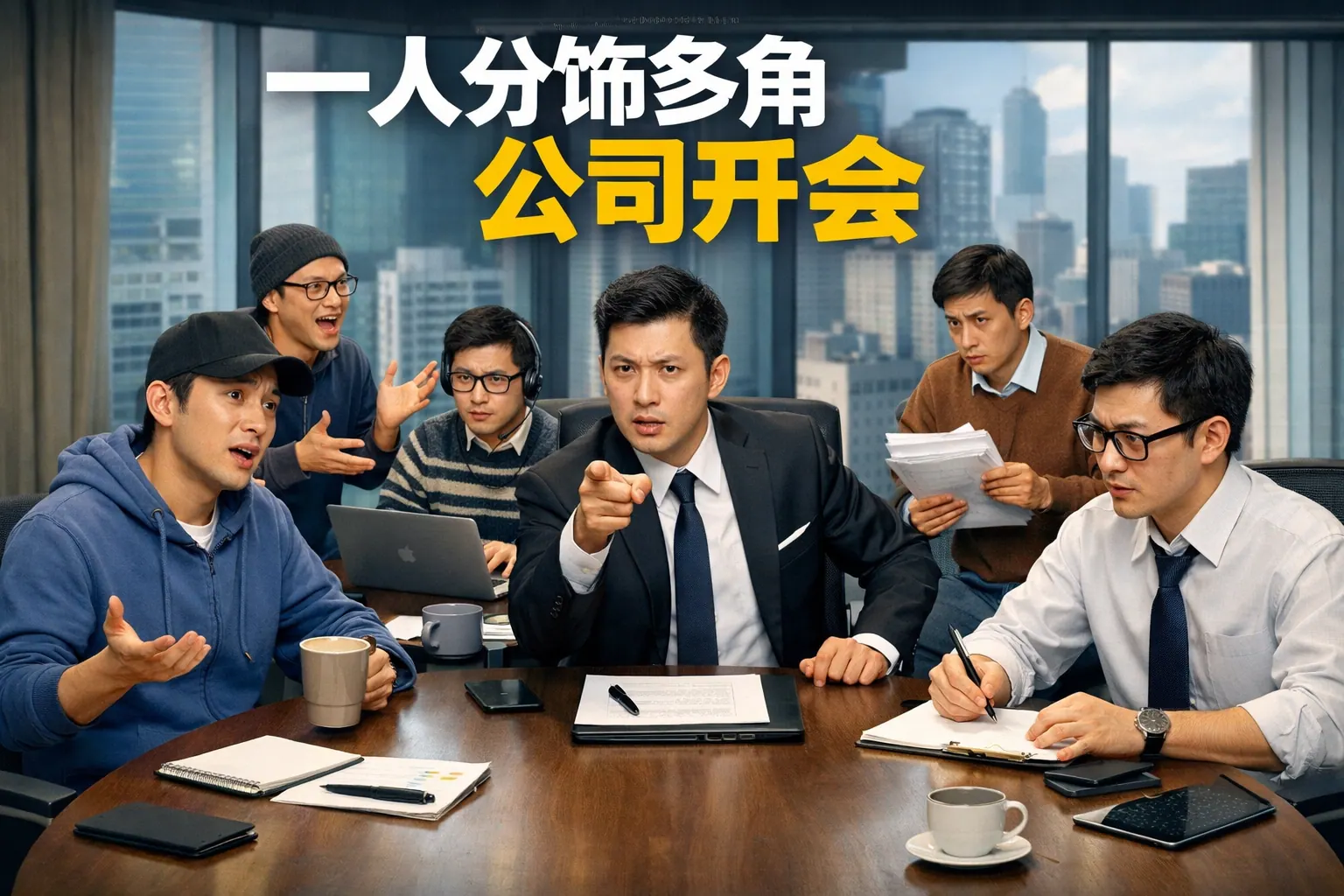 一人分饰多角公司开会