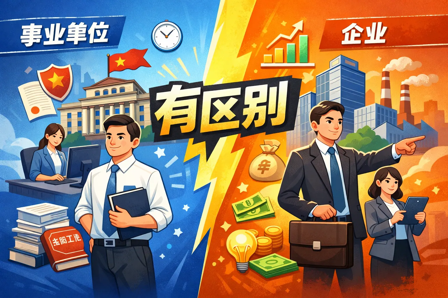 事业单位与企业的区别主要体现在设立目的、管理体系、薪酬结构、晋升机制与风险承担等方面。事业单位以公益服务为核心,强调编制管理与稳定保障;企业以市场竞争和盈利为导向,强调效率与绩效激励。两者在组织文化和职业发展路径上存在系统性差异。未来随着改革深化,两类组织的管理方式将逐步融合,但公益与营利、稳定与竞争的本质差异仍将长期存在。