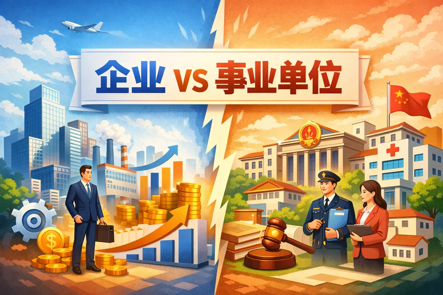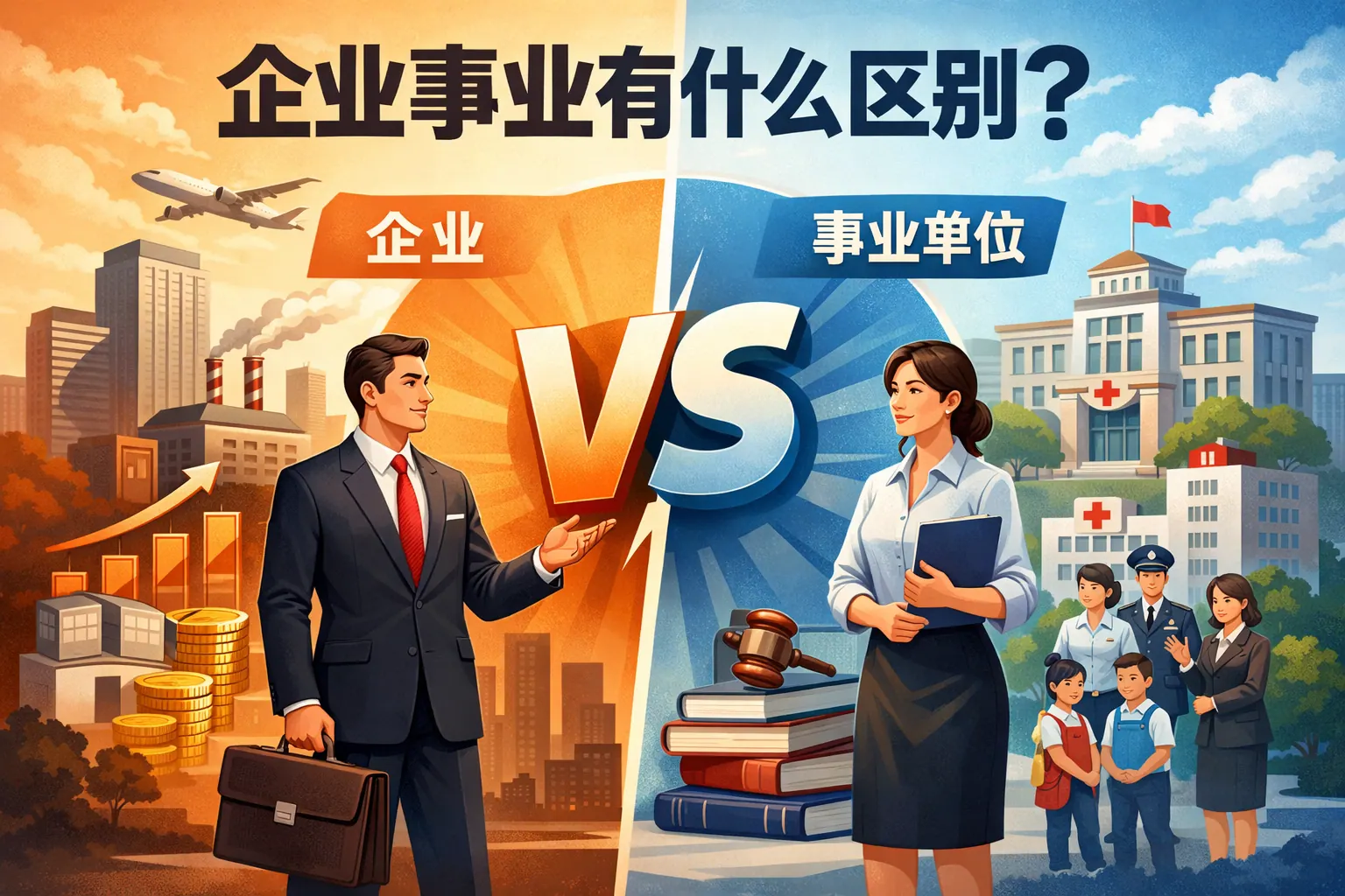 企业与事业单位的根本区别在于组织目标与运行机制:企业以盈利和市场竞争为核心,自负盈亏,强调效率与绩效;事业单位以公共服务为宗旨,多依赖财政支持,注重社会效益与制度规范。两者在资金来源、用人制度、绩效考核、风险承担和管理结构等方面存在系统差异。企业更具灵活性和竞争性,事业单位更强调稳定性与公益属性。随着改革与数字化推进,两类组织正分别向高效率与高质量服务方向演进,在社会体系中形成互补格局。