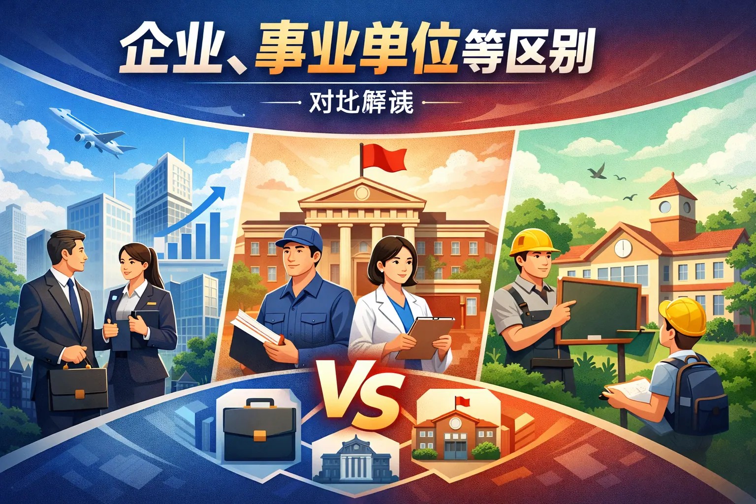 企业与事业单位的核心区别在于组织性质与目标定位:企业以盈利和市场竞争为核心,资金来源多元、人员流动性高、薪酬弹性大;事业单位以公益服务为宗旨,主要依赖财政支持,人员管理相对稳定,强调制度与规范。两者在资金来源、人员身份、薪酬结构、管理机制和风险承担方面均存在系统差异。选择方向应结合个人职业规划与风险偏好,同时未来两类组织在管理方式上将呈现融合趋势。