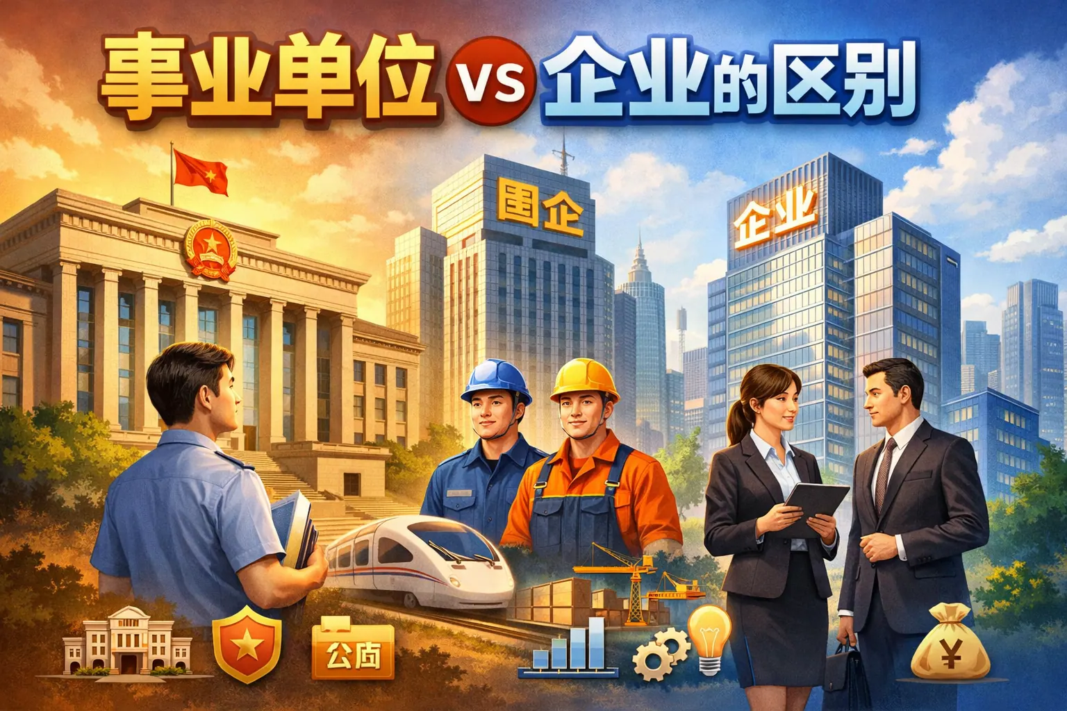中央企业与事业单位在法律性质、管理体制、资金来源、人员身份和绩效目标等方面存在显著差异。中央企业属于市场化运作的国有企业,强调资产保值增值和战略任务;事业单位以公益服务为核心,侧重社会效益和公共责任。两者在编制管理、薪酬机制和考核方式上不同,但都在国家治理体系中发挥重要作用,并在改革与数字化进程中持续演进。