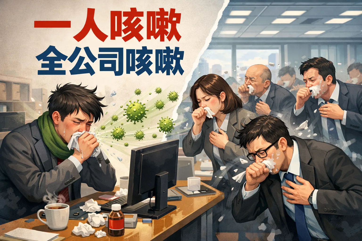 在高密度、通风不足的办公环境中,一名员工咳嗽可能通过飞沫与气溶胶迅速引发群体性传播,形成“一人咳嗽全公司咳嗽”的现象。文章从传播机制、空气质量、企业制度与个人行为等方面系统分析原因,并指出优化通风、建立合理病假与远程办公机制、提升健康意识是降低办公室交叉感染风险的关键。未来健康管理与弹性办公将成为企业风险管理的重要方向。