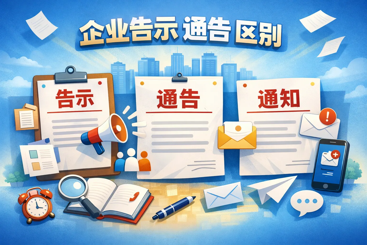企业告示主要用于内部事务通知与执行说明,侧重员工管理与信息传达;企业通告则适用于面向全体员工或社会公众发布的正式公告,具有更强的公开性和一定法律提示意义。两者在发布对象、法律效力、语言风格、应用场景和审批流程上均存在明显差异。涉及外部权益或合同关系调整的事项应采用通告形式,而日常内部管理事项更适合使用告示。规范区分与使用,有助于提升企业合规管理水平与沟通效率。