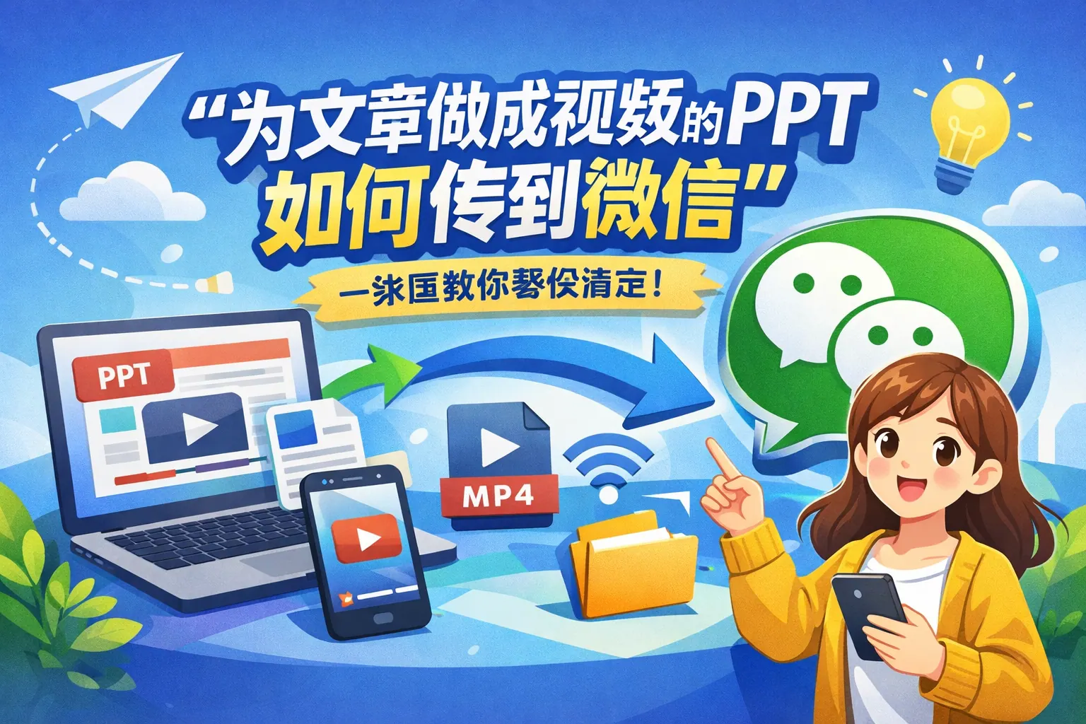在微信中播放PPT视频的关键是将PPT正确导出为MP4格式,并控制视频体积以适配微信限制。常见方式包括直接发送视频文件、通过云存储分享链接或发布至视频号,不同场景选择不同方案更高效。导出时建议使用H.264编码、720p分辨率,并合理压缩码率以确保清晰度与流畅度。掌握格式转换、体积优化与平台适配三步,即可实现PPT视频在微信中的稳定播放与高质量展示。