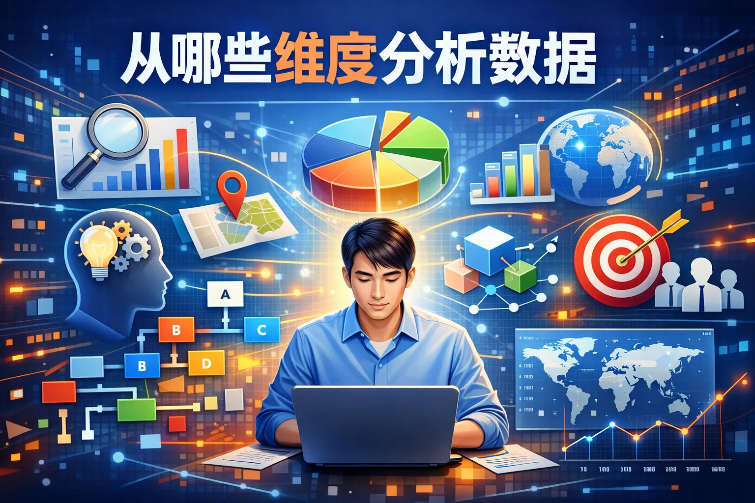 分析数据应从目标、时间、空间、结构、用户、行为、价值与趋势八大维度展开,构建多维交叉的数据分析框架。围绕业务目标拆解指标,通过时间趋势判断变化方向,结合空间与结构识别差异来源,再通过用户与行为分析挖掘过程问题,最终以价值评估与趋势预测实现决策优化。多维度数据分析能够提升决策准确性与前瞻性,是企业实现数据驱动增长的核心方法。