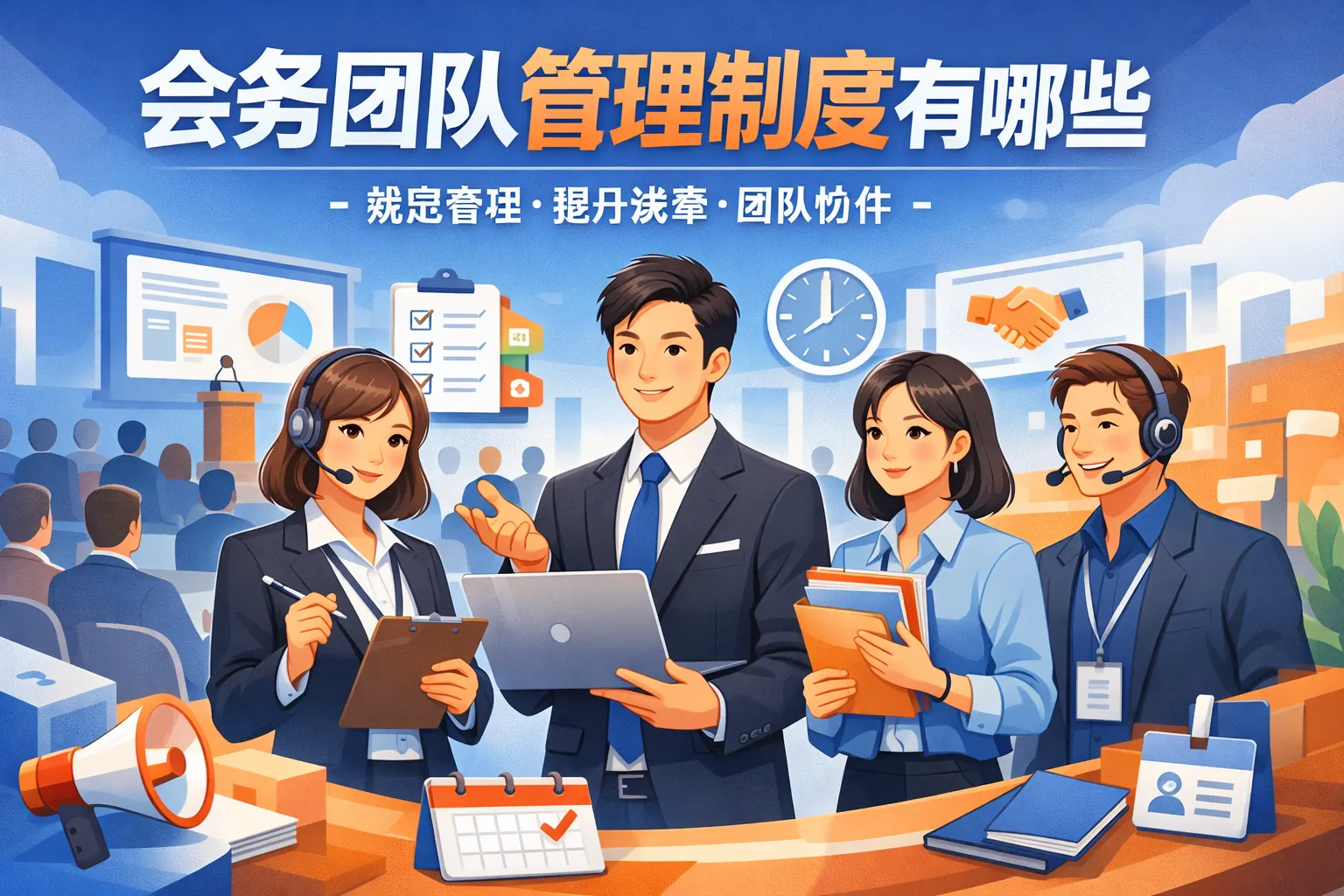 会务团队管理制度主要包括组织架构与岗位职责、流程管理、预算与财务控制、供应商管理、现场执行与风险应急、信息沟通与档案管理、绩效考核以及培训提升等模块。建立系统化、标准化的管理制度,有助于提升会议执行效率、控制成本、降低风险并增强团队协作能力。结合质量管理与风险管理理念,通过持续复盘与数据优化,会务团队能够实现专业化与数字化升级,形成可持续发展的核心竞争力。