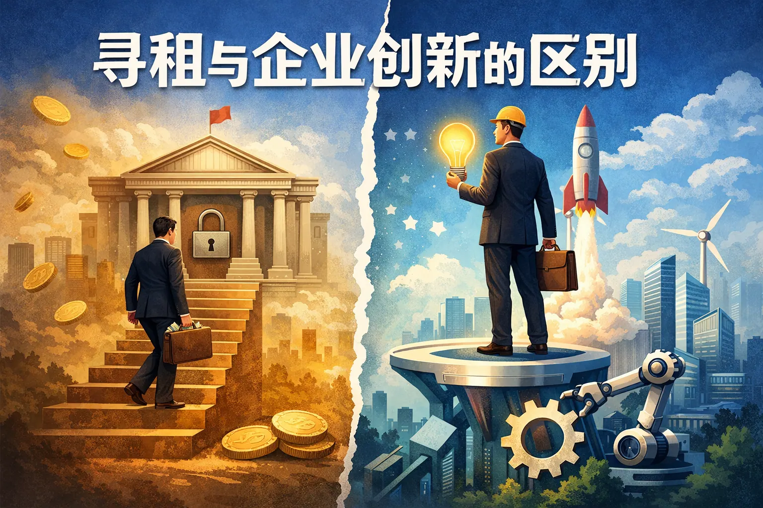 寻租与企业创新的根本区别在于是否创造新增价值。创新通过技术突破、产品升级和组织优化扩大市场空间,是长期经济增长和企业竞争力的来源;寻租则通过政策影响和制度优势获取既有利益,属于资源再分配行为。两者在目标、资源配置、组织能力和社会影响方面存在显著差异。创新强化技术能力和长期竞争力,而寻租依赖制度环境,难以形成可持续优势。企业若追求稳健发展,应以创新为核心战略方向。
