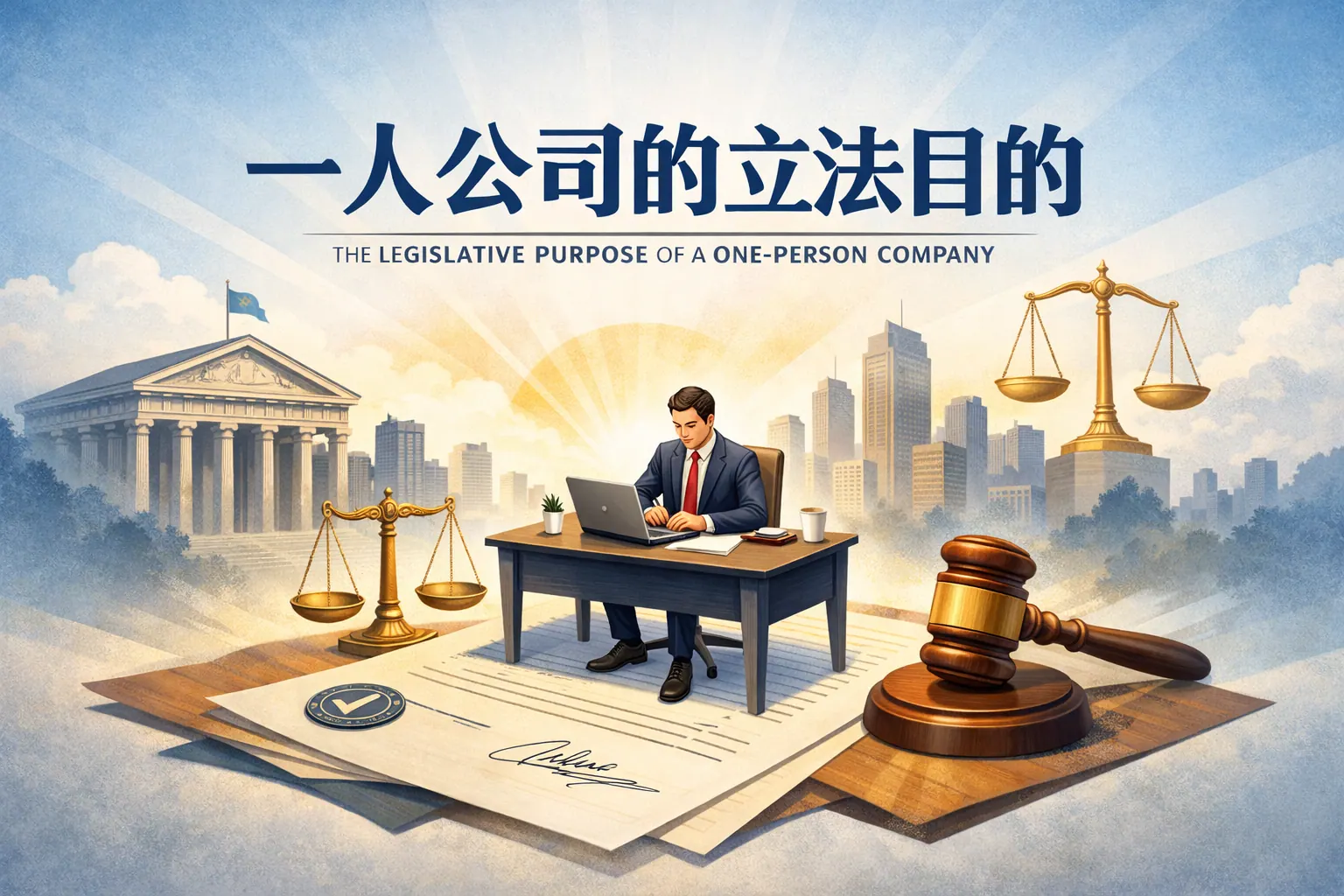 一人公司的立法目的在于在鼓励创业与防范风险之间取得平衡,通过确认单一股东公司的合法地位,降低创业门槛,同时强化出资责任、人格否认制度和信息披露要求,以防止滥用有限责任损害债权人利益。立法既促进市场主体多元化和经营效率提升,也通过资本约束与治理规范维护交易安全,体现效率与公平并重的制度设计逻辑。
