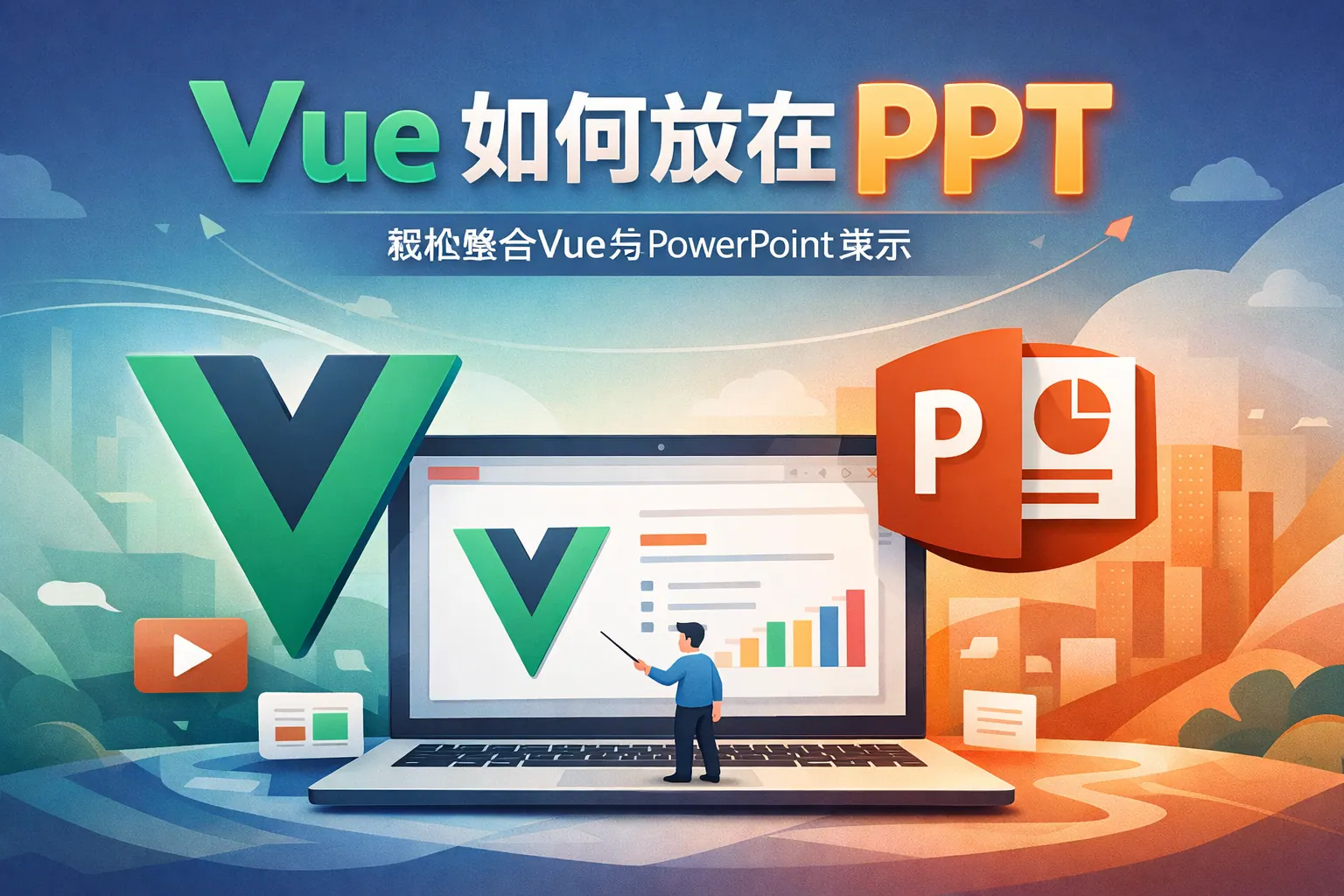将 Vue 放入 PPT 的关键在于把前端应用转换为可在演示环境运行的形式,常见方式包括在线网页嵌入、本地 HTML 加载、视频录制以及图片或 GIF 展示。若需要交互效果,可选择在线或本地嵌入;若只展示功能流程,视频方式更稳定。实际操作中需注意网络环境、路径配置和版本兼容问题,并提前进行性能与环境测试,以确保演示顺畅。随着演示工具云端化发展,未来更倾向于直接通过网页形式展示前端应用。