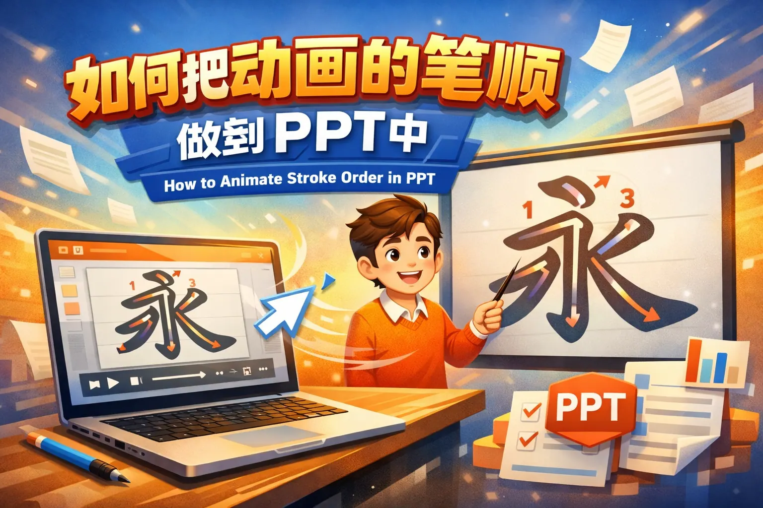 本文系统讲解了在 PowerPoint 中实现动画笔顺效果的核心思路与具体方法。通过分析形状拆分、路径动画、SVG 矢量和图片序列等多种方案,说明了如何在不同应用场景下选择合适策略。文章强调笔顺动画的本质是对象拆解与时间控制,并结合动画参数设置、常见问题与优化建议,帮助用户在教学、演示和展示中高效复现真实书写过程。最终指出,工具只是手段,遵循笔顺逻辑与认知规律才是高质量动画的关键。