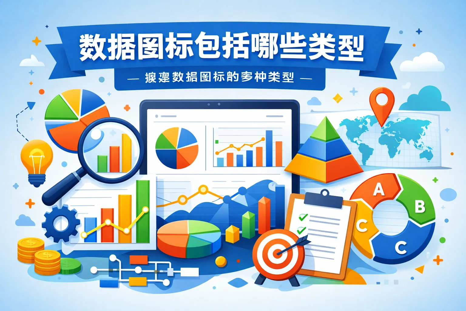 数据图标主要包括对比类、趋势类、构成类、分布类、关系类、地图类、流程类、指标类和复合型图表等类型,不同图表承担差异展示、趋势分析、结构占比、数据分布与变量关系表达等功能。合理选择数据图标能够提升信息传达效率和决策质量,是数据分析与可视化表达的核心工具。未来数据图标将向交互化与智能化方向发展。