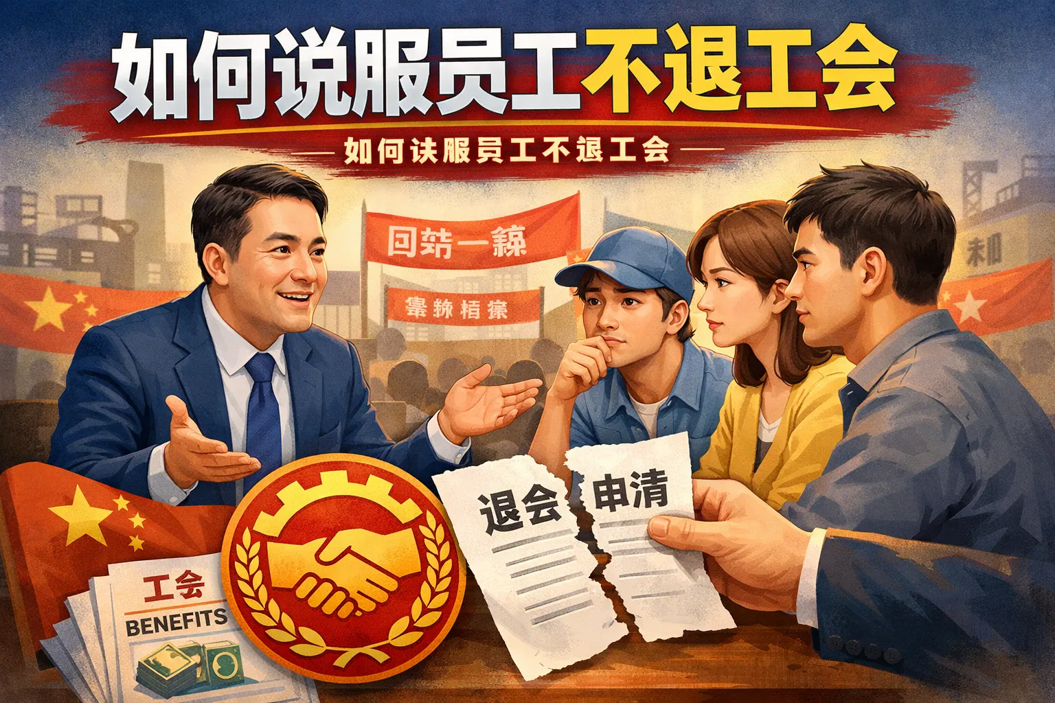 如何说服员工不退工会