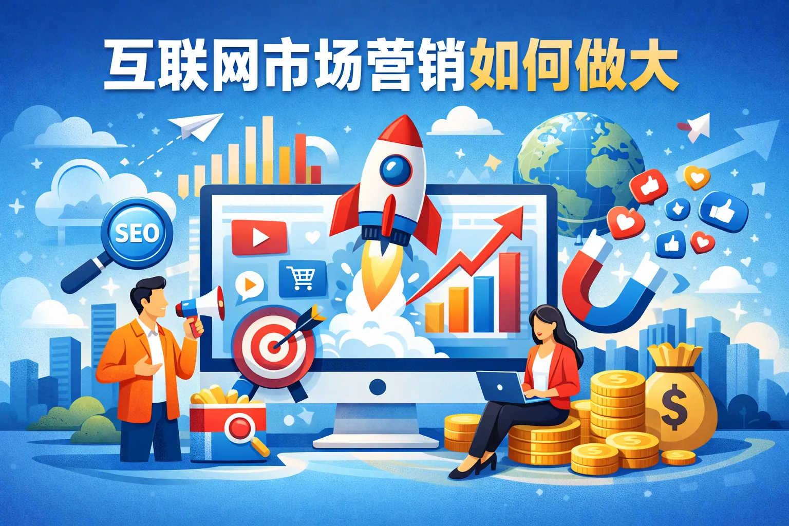 互联网市场营销要做大,核心在于建立系统化增长模型,通过战略规划、多渠道布局、内容与SEO建设、数据驱动优化、品牌资产积累以及私域运营,实现流量、转化与复购的闭环管理。规模化营销不是依赖单一平台或短期投放,而是通过可复制的流程与组织能力提升,降低获客成本,提高用户生命周期价值。未来趋势将更加智能化与生态化,企业需要提前构建数据能力与内容资产,才能实现长期稳健增长。