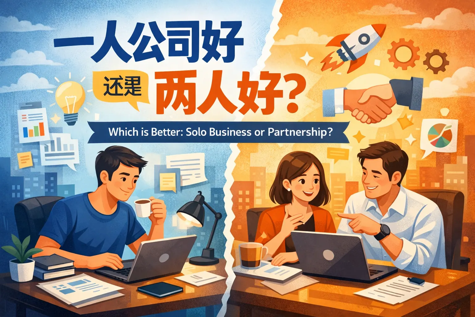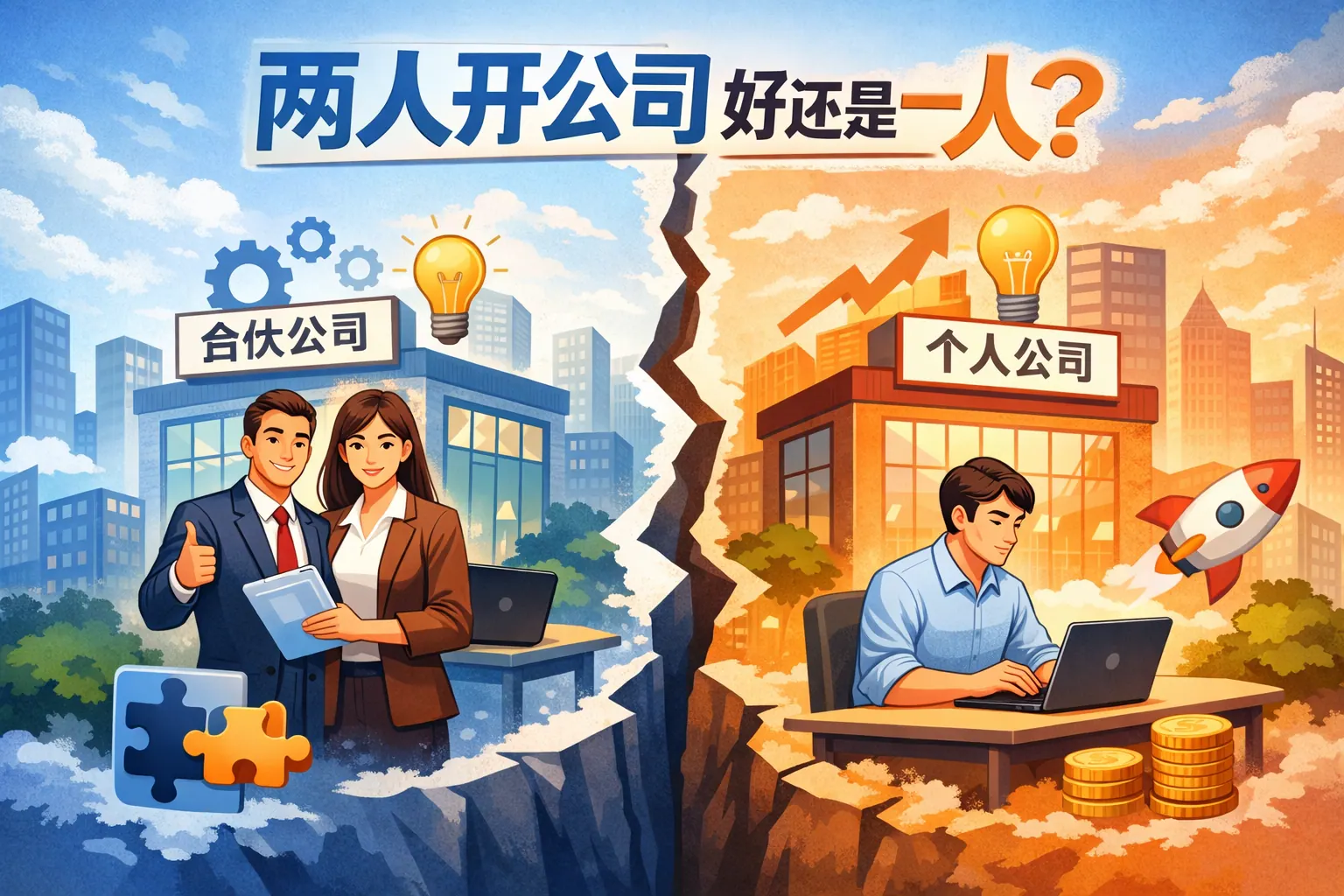 两人开公司还是一人创业没有绝对优劣,关键在于项目复杂度、能力结构与风险承受能力。一人创业决策效率高、控制权集中,适合轻资产和能力复合型项目;两人合伙则能分担风险、实现能力互补,更利于规模扩张,但需提前设计股权与分工机制。真正决定成败的不是人数,而是权责是否清晰、价值观是否一致以及制度是否完善。未来趋势可能是先单人启动,再根据发展阶段引入合伙人,实现控制力与扩张力的平衡。