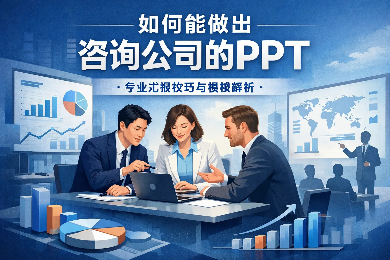 做出咨询公司的PPT,关键不在设计炫酷,而在结构化表达和结论前置。咨询风格强调金字塔逻辑、单页单结论、数据支撑与决策导向,通过清晰结构、严谨图表和专业排版提升信息密度与管理层阅读效率。掌握问题拆解能力与数据分析能力,并通过持续模仿与训练优化表达方式,才能真正实现从普通商务PPT到咨询级报告的跃迁。未来随着数据化和智能化发展,咨询PPT将更加高密度与洞察驱动。