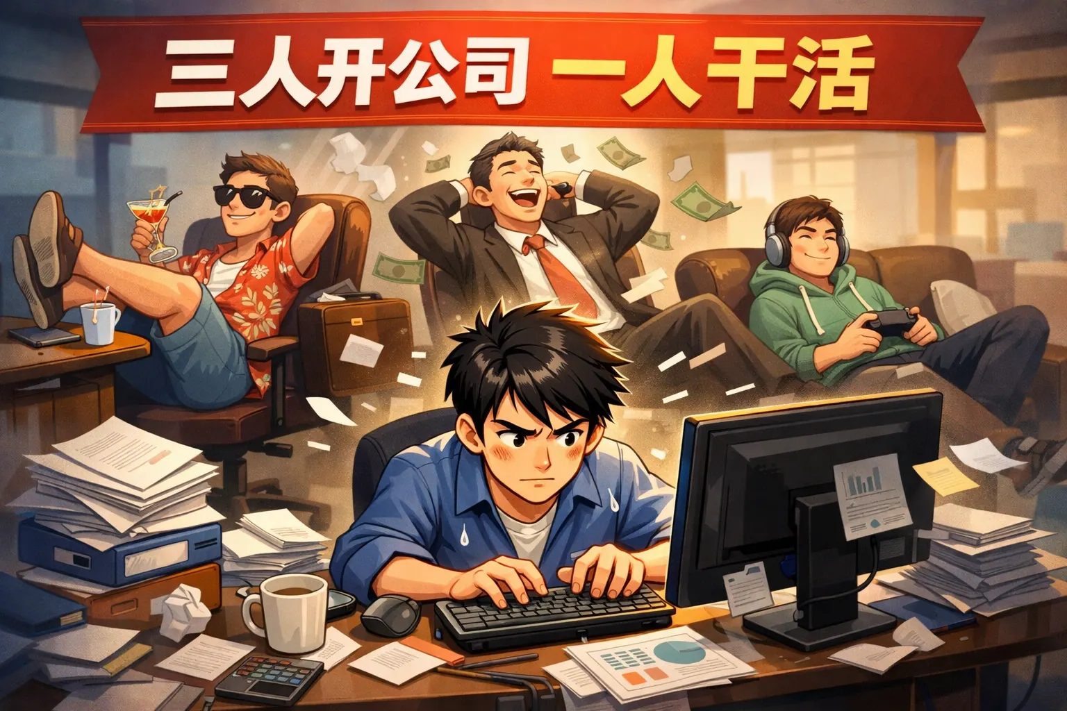 三人开公司一人干活
