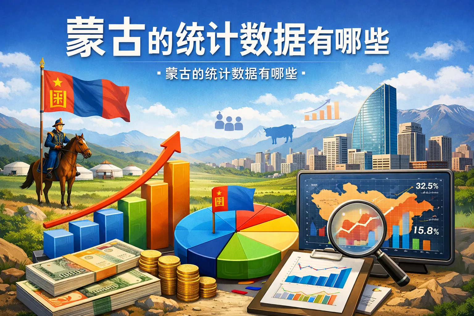 蒙古的统计数据主要涵盖人口规模、经济总量、产业结构、财政金融、对外贸易、资源储量及社会发展水平等方面。其经济特征表现为人口规模小、资源储量丰富、对矿业依赖度高、增长波动明显。GDP规模约200亿美元左右,出口高度集中于矿产品,城市化率较高但城乡差距存在。整体来看,蒙古属于资源驱动型经济体,未来发展关键在于产业多元化与结构优化。